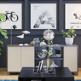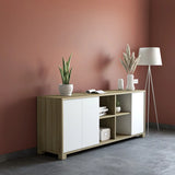 Bliss offers sophistication with adaptable storage. Designed in a warm stout walnut palette, this console table with storage lends charm to any setting. Its adjustable shelves allow for custom organization, adding quiet functionality to your interiors.