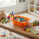Stackable design to maximise use of space.Waterproof material offers easy upkeep.Economical storage container.Vibrant colour adds to charm.