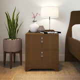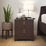 Mebel offers a refined bedroom side table in dark nectar, ideal for minimalist layouts. It offers a sturdy surface and a dark finish. Two smooth-gliding drawers keep clutter out of sight, making it a smart addition to your nighttime routine.