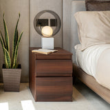A contemporary essential for your room, the Renz side table blends sleek design with everyday function. Crafted with laminate, it features smooth-running drawers with pull-out stops for easy storage.